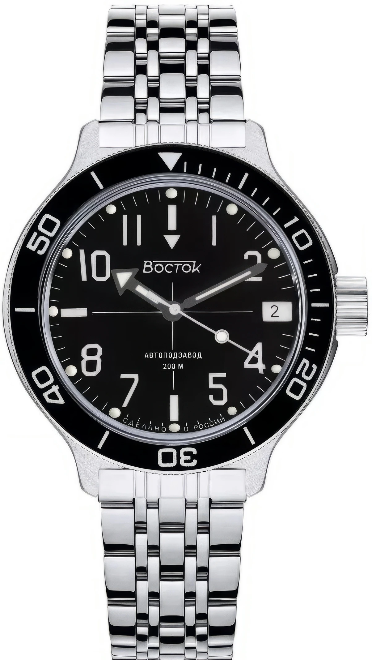 Мужские наручные часы Восток Амфибия 720073. Механические с ручным подзаводом. Браслет из нержавеющей стали. Браслет из нержавеющей стали. Органическое стекло. На циферблате отображается текущее число месяца. Часы являются водонепроницаемыми до 20 Бар. Цвет циферблата: Серебристый. Цвет циферблата: Черный. Цвет корпуса: Черный. На стрелки и отметки нанесен светонакопительный состав, благодаря этому считывать информацию с циферблата возможно и в темноте. Толщина: 12 мм. Гарантия: 1 год.