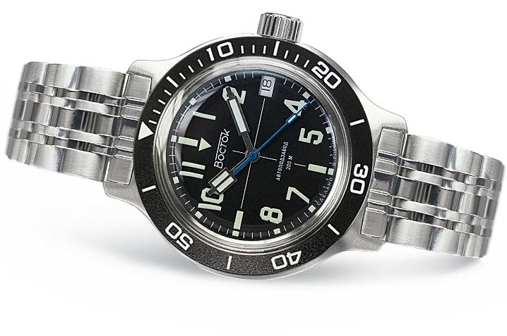 Мужские наручные часы Восток Амфибия 72013Б. Механические с ручным подзаводом. Браслет из нержавеющей стали. Браслет из нержавеющей стали. Органическое стекло. На циферблате отображается текущее число месяца. Часы являются водонепроницаемыми до 20 Бар. Цвет циферблата: Серебристый. Цвет циферблата: Черный. Цвет корпуса: Черный. На стрелки и отметки нанесен светонакопительный состав, благодаря этому считывать информацию с циферблата возможно и в темноте. Толщина: 13 мм. Гарантия: 1 год.