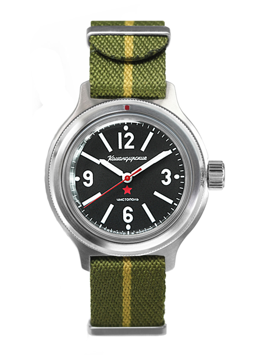 Мужские наручные часы Восток Амфибия 72045А. Механические с ручным подзаводом. Текстильный ремешок. Ударопрочная конструкция часов защищает от ударов и вибрации. Аккумулятор обеспечивает часы достаточным питанием приблизительно на 10 лет. Браслет из нержавеющей стали. Органическое стекло. Часы являются водонепроницаемыми до 20 Бар. Цвет циферблата: Серебристый. Цвет корпуса: Черный. На стрелки и отметки нанесен светонакопительный состав, благодаря этому считывать информацию с циферблата возможно и в темноте. Высота (с ушками): 46 мм. Толщина: 13 мм. Гарантия: 1 год.