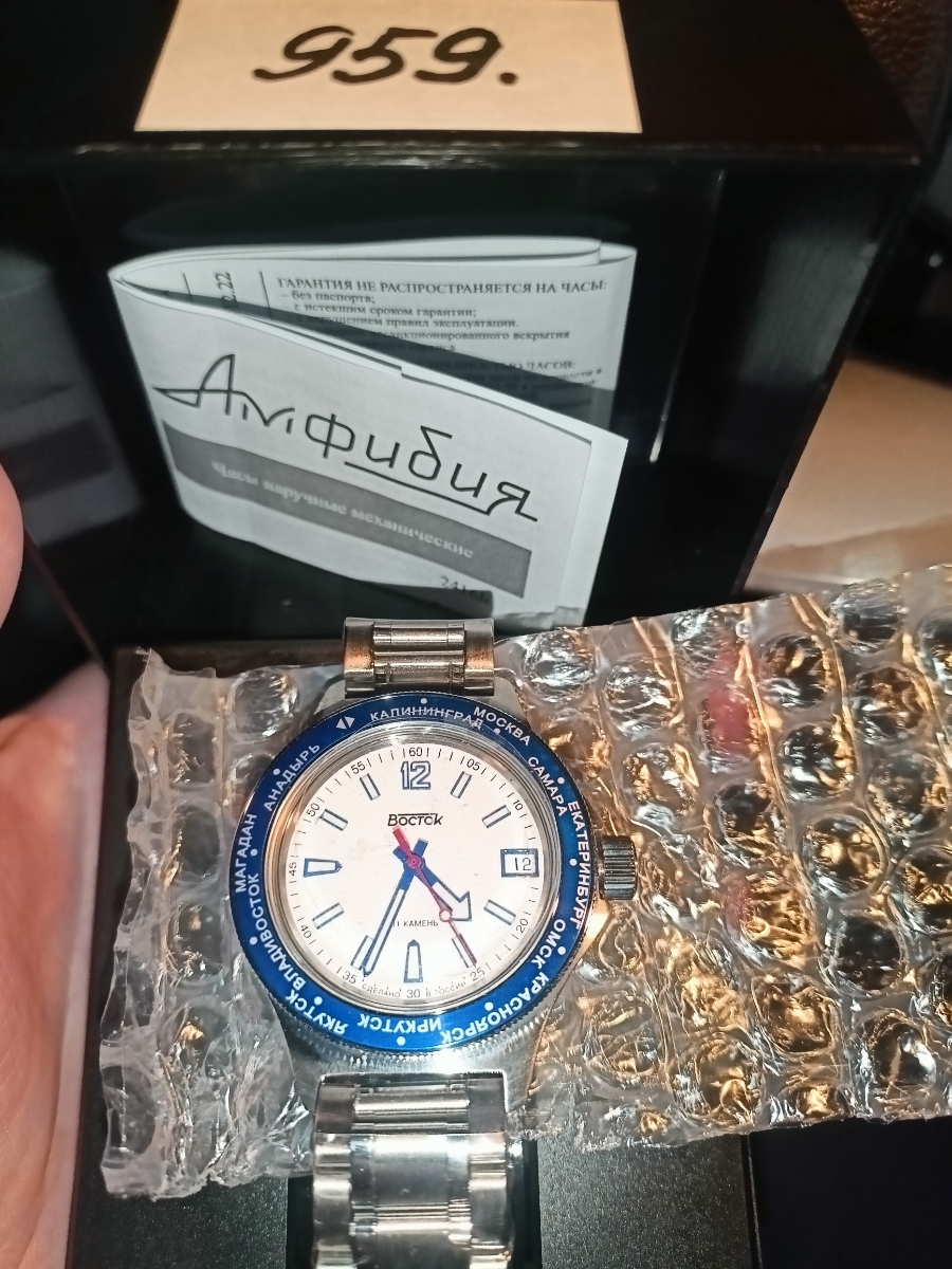 Мужские наручные часы Восток Амфибия 740019. Механические с ручным подзаводом. Латунный браслет. Браслет из нержавеющей стали. Браслет из нержавеющей стали. Органическое стекло. На циферблате отображается текущее число месяца. Часы являются водонепроницаемыми до 20 Бар. Цвет циферблата: Серебристый. Цвет циферблата: Синий. Цвет корпуса: Белый. На стрелки и отметки нанесен светонакопительный состав, благодаря этому считывать информацию с циферблата возможно и в темноте. Толщина: 14 мм. Гарантия: 1 год.