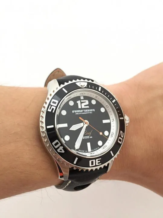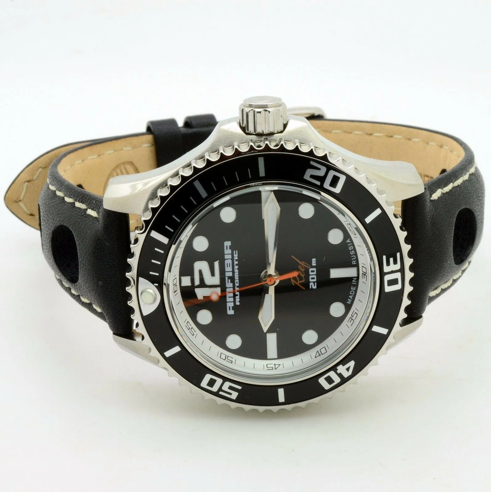 Мужские наручные часы Восток Амфибия 080495. Механические с автоподзаводом. Пружина механизма заводится автоматически благодаря естественным движениям владельца в процессе ежедневной носки часов. Корпус изготовлен из высококачественной нержавеющей стали 316L с высокими антикоррозийными свойствами. На стрелки и отметки нанесен светонакопительный состав, благодаря этому считывать информацию с циферблата возможно и в темноте. Ремешок изготовлен из кожи. Прочное, устойчивое к царапинам минеральное стекло защищает часы от повреждений. Часы являются водонепроницаемыми до 20 Бар. Цвет корпуса: Двухцветный. Цвет циферблата: Черный. Ширина (с заводной головкой): 42мм. Толщина: 15мм. Гарантия: 1 год.