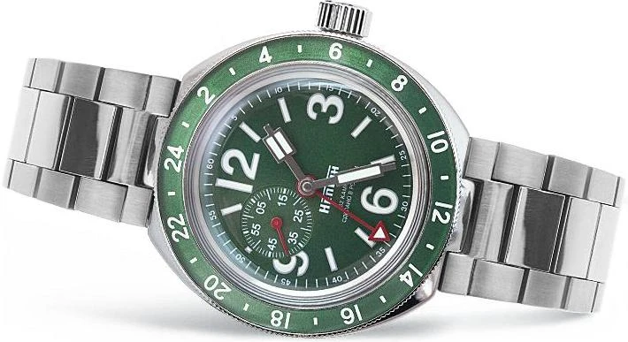 Мужские наручные часы Восток Амфибия 96072А. Механические с ручным подзаводом. Браслет из нержавеющей стали. Браслет из нержавеющей стали. Органическое стекло. Часы являются водонепроницаемыми до 20 Бар. Цвет циферблата: Зеленый. Цвет циферблата: Серебристый. Цвет корпуса: Зеленый. На стрелки и отметки нанесен светонакопительный состав, благодаря этому считывать информацию с циферблата возможно и в темноте. Толщина: 13 мм. Гарантия: 1 год.