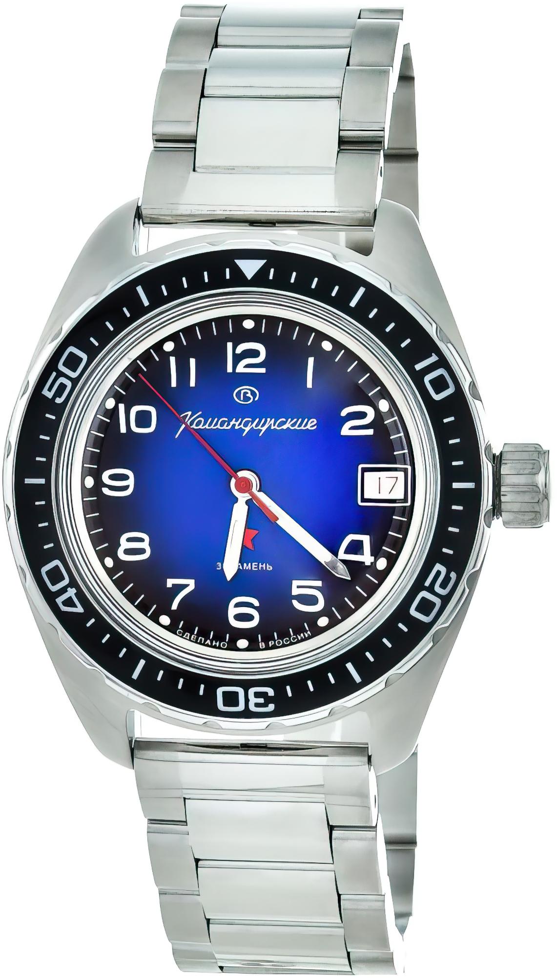 Мужские наручные часы Восток Командирские 02034А. Механические с ручным подзаводом. Браслет из нержавеющей стали. Браслет из нержавеющей стали. Органическое стекло. На циферблате отображается текущее число месяца. Часы являются водонепроницаемыми до 20 Бар. Цвет циферблата: Серебристый. Цвет циферблата: Черный. Цвет корпуса: Синий. На стрелки и отметки нанесен светонакопительный состав, благодаря этому считывать информацию с циферблата возможно и в темноте. Толщина: 15 мм. Гарантия: 1 год.
