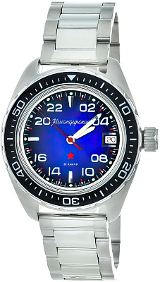 Мужские наручные часы Восток Командирские 02036А. Механические с ручным подзаводом. Браслет из нержавеющей стали. Браслет из нержавеющей стали. Органическое стекло. На циферблате отображается текущее число месяца. Часы являются водонепроницаемыми до 20 Бар. Цвет циферблата: Серебристый. Цвет циферблата: Черный. Цвет корпуса: Синий. Цвет корпуса: Черный. На стрелки и отметки нанесен светонакопительный состав, благодаря этому считывать информацию с циферблата возможно и в темноте. Толщина: 15 мм. Гарантия: 1 год.