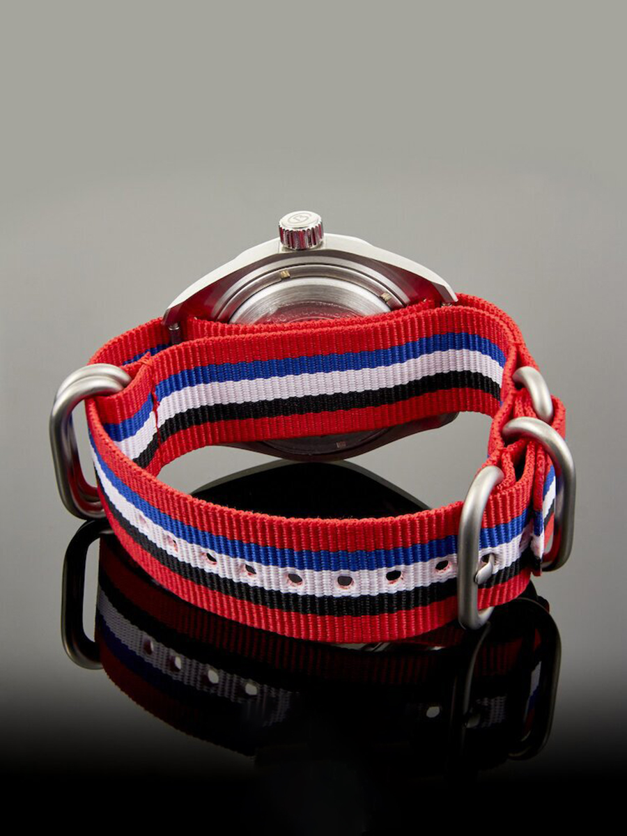 Мужские наручные часы Восток Командирские 03098А. Механические с ручным подзаводом. Текстильный ремешок. Ударопрочная конструкция часов защищает от ударов и вибрации. Браслет из нержавеющей стали. Органическое стекло. Часы являются водонепроницаемыми до 20 Бар. Цвет циферблата: Черный. Цвет корпуса: Белый. На стрелки и отметки нанесен светонакопительный состав, благодаря этому считывать информацию с циферблата возможно и в темноте. Высота (с ушками): 49 мм. Толщина: 15 мм. Гарантия: 1 год.