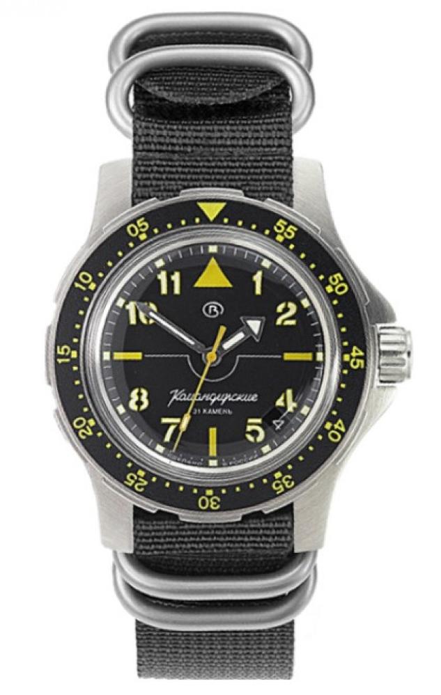 Мужские наручные часы Восток Командирские 18020А. Механические с ручным подзаводом. Текстильный ремешок. Браслет из нержавеющей стали. Органическое стекло. На циферблате отображается текущее число месяца. Часы являются водонепроницаемыми до 20 Бар. Цвет циферблата: Серебристый. Цвет циферблата: Черный. Цвет корпуса: Черный. На стрелки и отметки нанесен светонакопительный состав, благодаря этому считывать информацию с циферблата возможно и в темноте. Толщина: 13 мм. Гарантия: 1 год.