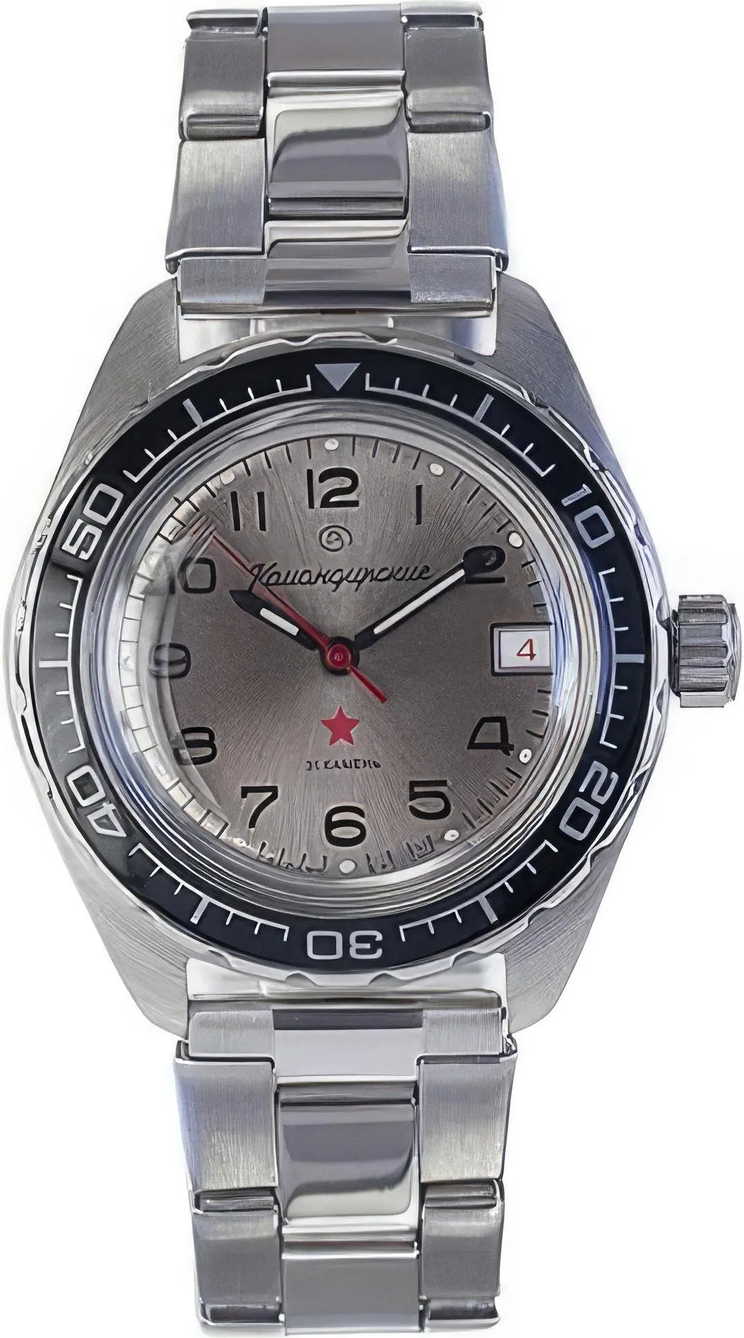 Мужские наручные часы Восток Командирские 020708. Механические с автоподзаводом. Пружина механизма заводится автоматически благодаря естественным движениям владельца в процессе ежедневной носки часов. Корпус изготовлен из высококачественной нержавеющей стали 316L с высокими антикоррозийными свойствами. На стрелки и отметки нанесен светонакопительный состав, благодаря этому считывать информацию с циферблата возможно и в темноте. На циферблате отображается текущее число месяца. Браслет из нержавеющей стали. Органическое стекло. Часы являются водонепроницаемыми до 20 Бар. Цвет корпуса: Двухцветный. Цвет циферблата: Серый. Ширина (с заводной головкой): 42мм. Толщина: 15мм. Гарантия: 1 год.