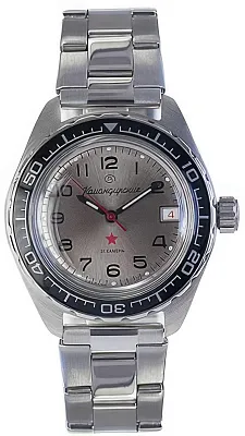 Мужские наручные часы Восток Командирские 020711. Механические с автоподзаводом. Пружина механизма заводится автоматически благодаря естественным движениям владельца в процессе ежедневной носки часов. Корпус изготовлен из высококачественной нержавеющей стали 316L с высокими антикоррозийными свойствами. На стрелки и отметки нанесен светонакопительный состав, благодаря этому считывать информацию с циферблата возможно и в темноте. На циферблате отображается текущее число месяца. Браслет из нержавеющей стали. Органическое стекло. Часы являются водонепроницаемыми до 20 Бар. Ширина (с заводной головкой): 42мм. Толщина: 15мм. Гарантия: 1 год.