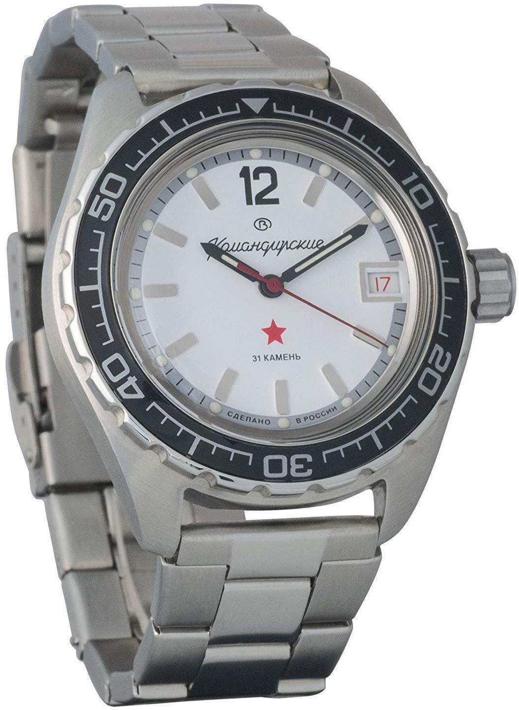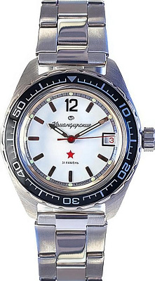 Мужские наручные часы Восток Командирские 020739. Механические с автоподзаводом. Пружина механизма заводится автоматически благодаря естественным движениям владельца в процессе ежедневной носки часов. Корпус изготовлен из высококачественной нержавеющей стали 316L с высокими антикоррозийными свойствами. На стрелки и отметки нанесен светонакопительный состав, благодаря этому считывать информацию с циферблата возможно и в темноте. На циферблате отображается текущее число месяца. Браслет из нержавеющей стали. Органическое стекло. Часы являются водонепроницаемыми до 20 Бар. Цвет корпуса: Двухцветный. Цвет циферблата: Белый. Ширина (с заводной головкой): 42мм. Толщина: 15мм. Гарантия: 1 год.