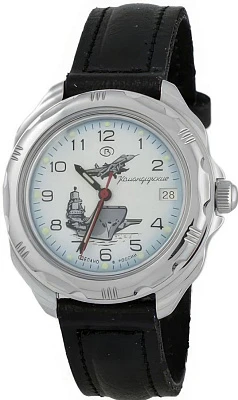 Мужские наручные часы Восток Командирские 211950. Механические с ручным подзаводом. Корпус изготовлен из высококачественной часовой латуни с высокими антикоррозийными свойствами. На стрелки и отметки нанесен светонакопительный состав, благодаря этому считывать информацию с циферблата возможно и в темноте. На циферблате отображается текущее число месяца. Ремешок изготовлен из кожи. Органическое стекло. Часы являются водонепроницаемыми до 3 Бар. Цвет циферблата: Зеленый. Ширина (с заводной головкой): 42мм. Толщина: 15мм. Гарантия: 1 год.