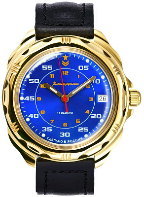 Мужские наручные часы Восток Командирские 219181. Механические с ручным подзаводом. Корпус изготовлен из высококачественной часовой латуни с высокими антикоррозийными свойствами. На стрелки и отметки нанесен светонакопительный состав, благодаря этому считывать информацию с циферблата возможно и в темноте. На циферблате отображается текущее число месяца. Ремешок изготовлен из кожи. Органическое стекло. Часы являются водонепроницаемыми до 3 Бар. Цвет корпуса: Желтое золото. Цвет циферблата: Синий. Ширина (с заводной головкой): 40мм. Толщина: 10мм. Гарантия: 1 год.