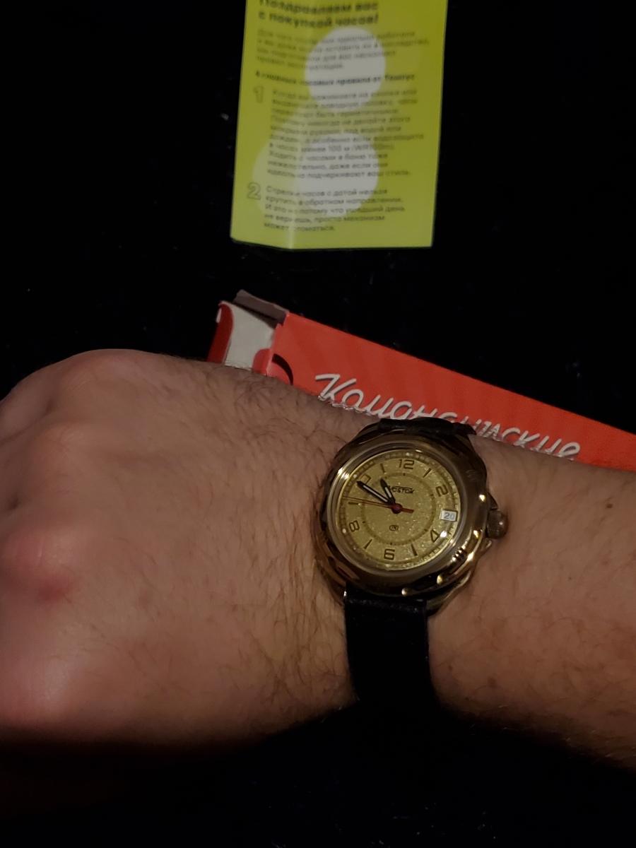 Пришли немного раньше срока. Упакованы были очень тщательно, спасибо за это продавцу. Отец похожие "Командирские часы" проносил всю жизнь, поэтому мой выбор пал на них. Всем доволен, рекомендую!