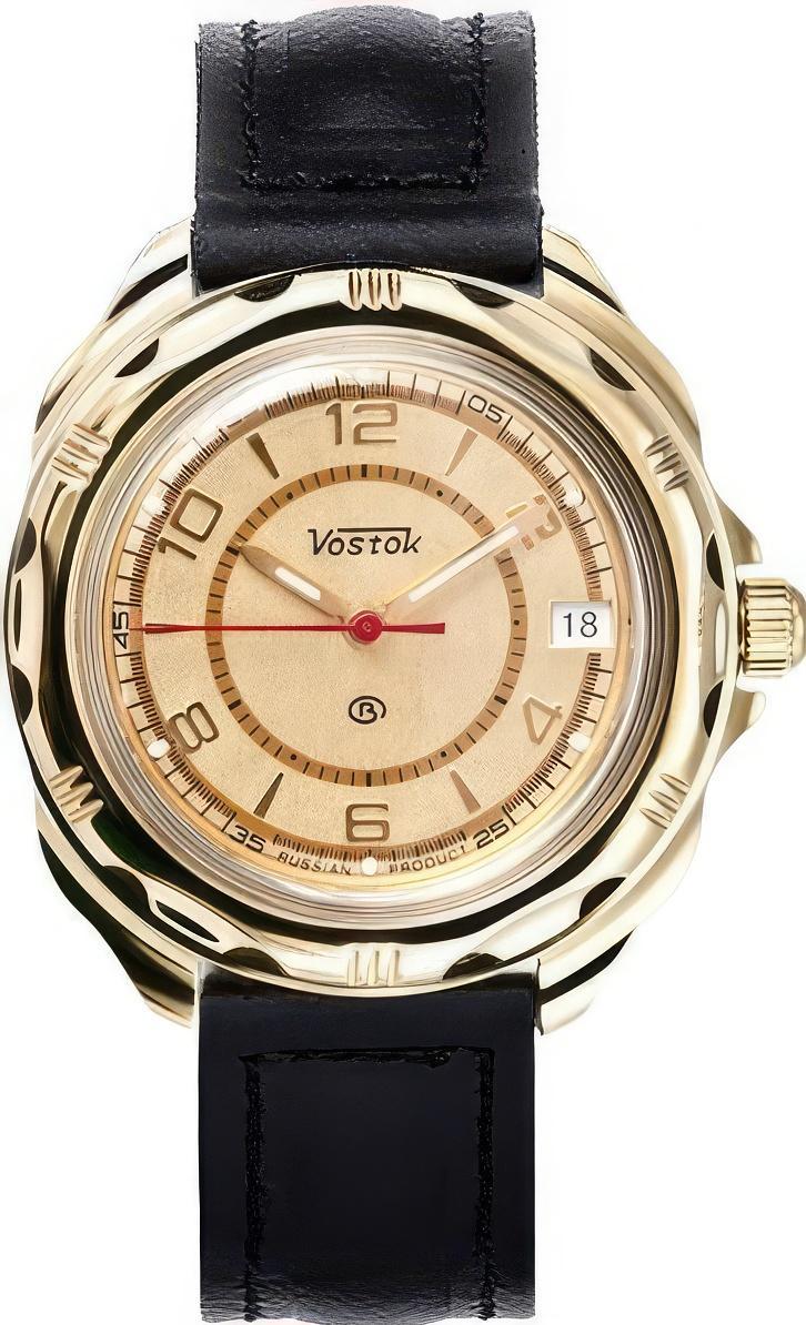 Мужские наручные часы Восток Командирские 219980. Механические с ручным подзаводом. Корпус изготовлен из высококачественной часовой латуни с высокими антикоррозийными свойствами. На стрелки и отметки нанесен светонакопительный состав, благодаря этому считывать информацию с циферблата возможно и в темноте. На циферблате отображается текущее число месяца. Ремешок изготовлен из кожи. Органическое стекло. Часы являются водонепроницаемыми до 3 Бар. Цвет корпуса: Двухцветный. Ширина (с заводной головкой): 40мм. Толщина: 10мм. Гарантия: 1 год.