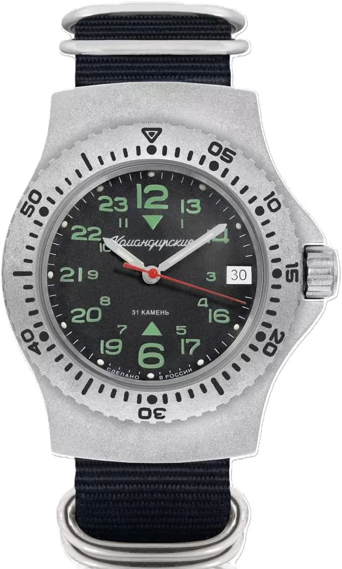 Мужские наручные часы Восток Командирские 280991. Механические с ручным подзаводом. Корпус изготовлен из высококачественной нержавеющей стали 316L с высокими антикоррозийными свойствами. На стрелки и отметки нанесен светонакопительный состав, благодаря этому считывать информацию с циферблата возможно и в темноте. На циферблате отображается текущее число месяца. Текстильный ремешок. Органическое стекло. Часы являются водонепроницаемыми до 20 Бар. Цвет корпуса: Серебристый. Цвет циферблата: Черный. Ширина (с заводной головкой): 40мм. Толщина: 15мм. Гарантия: 1 год.