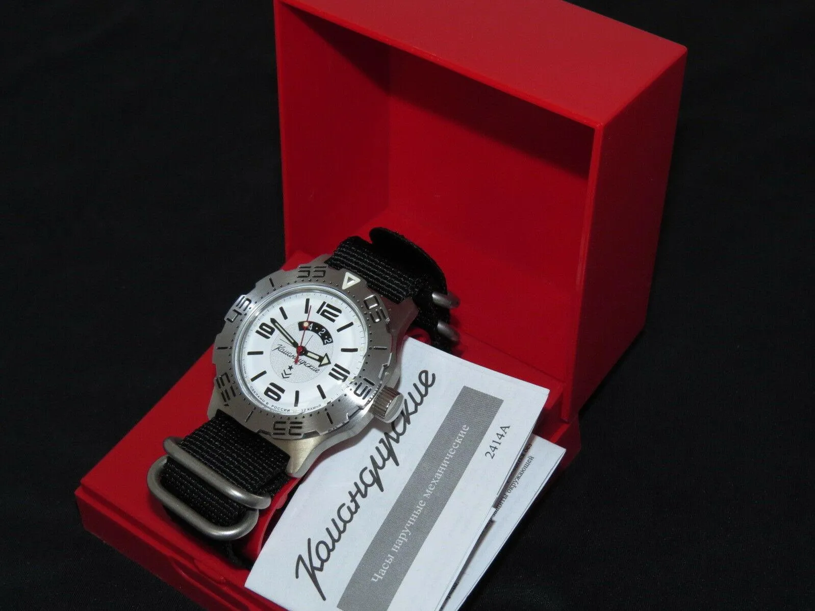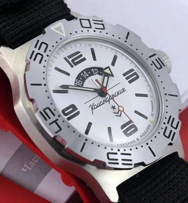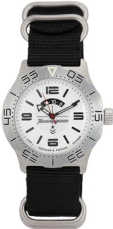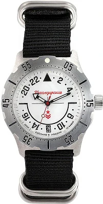 <b>Мужские наручные часы Восток Командирские 350618.</b> Механические с автоподзаводом. Пружина механизма заводится автоматически благодаря естественным движениям владельца в процессе ежедневной носки часов. Корпус изготовлен из высококачественной нержавеющей стали 316L с высокими антикоррозийными свойствами. На стрелки и отметки нанесен светонакопительный состав, благодаря этому считывать информацию с циферблата возможно и в темноте. На циферблате отображается текущее число месяца. Текстильный ремешок. Органическое стекло. Часы являются водонепроницаемыми до 10 Бар. Цвет корпуса: Двухцветный. Цвет циферблата: Белый. Ширина (с заводной головкой): 42мм. Толщина: 15мм. Гарантия: 1 год.