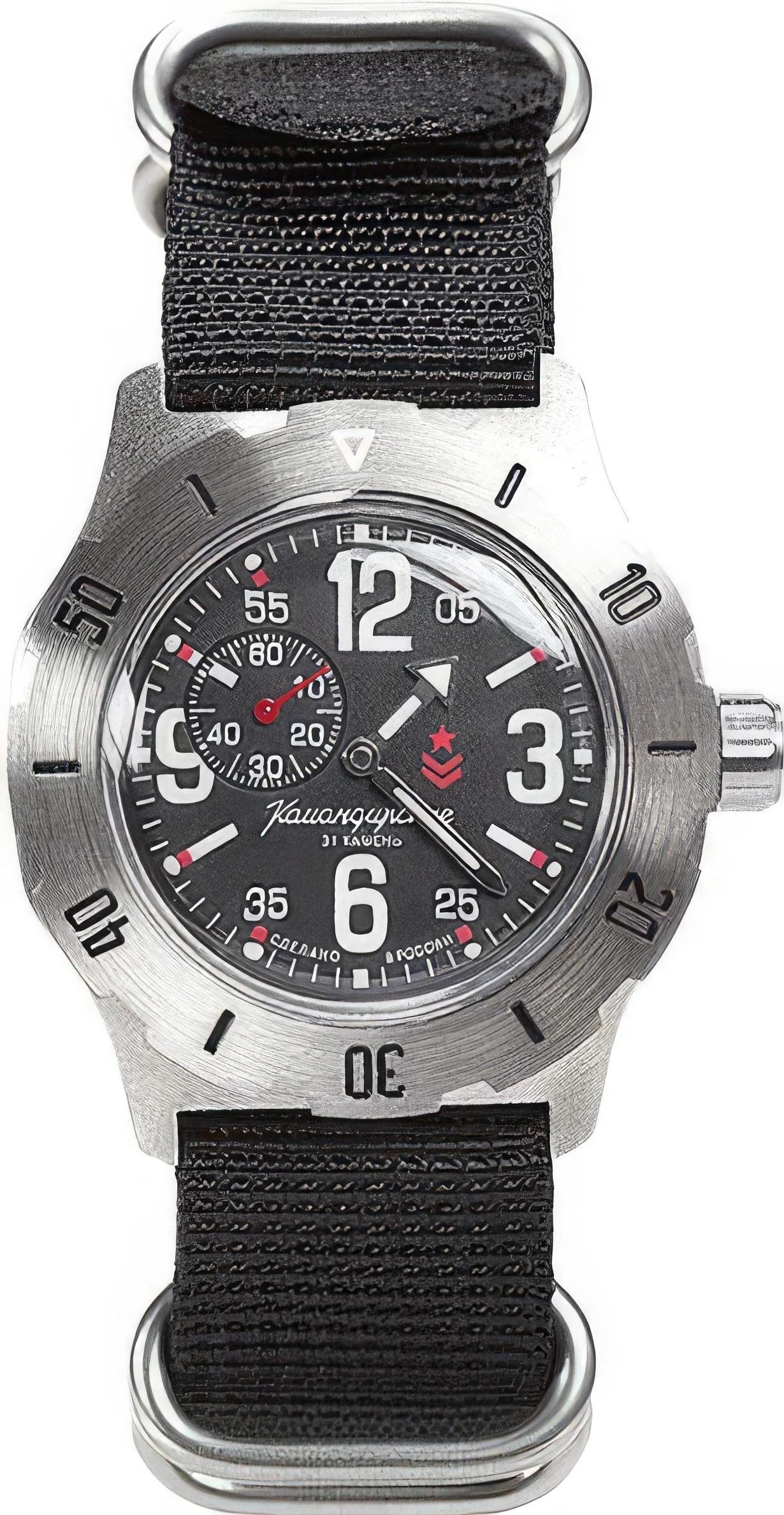 Мужские наручные часы Восток Командирские 350748. Механические с автоподзаводом. Пружина механизма заводится автоматически благодаря естественным движениям владельца в процессе ежедневной носки часов. Корпус изготовлен из высококачественной нержавеющей стали 316L с высокими антикоррозийными свойствами. На стрелки и отметки нанесен светонакопительный состав, благодаря этому считывать информацию с циферблата возможно и в темноте. Текстильный ремешок. Органическое стекло. Часы являются водонепроницаемыми до 10 Бар. Цвет корпуса: Двухцветный. Цвет циферблата: Черный. Ширина (с заводной головкой): 42мм. Толщина: 15мм. Гарантия: 1 год.