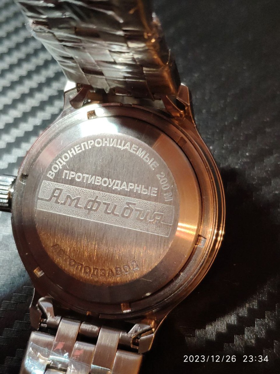 Это уже вторые аналогичные амфибии, которые я беру: сначала брал для себя, вторые для подарка. Особо подчеркну изумительный внешней вид: строгий рисунок аквалангиста, красивый синезелёный цвет циферблата. Очень полезные свойства: противоударные, водонепроницаемые 200 м., хотя дайвингом не занимаюсь, но приятно не беспокоится о них при попадании под сильный дождь или при купании. Ещё полезная вещь - автозавод, не нужно ежедневно откручивать заводную головку. Хотя пользоваться ей придётся, так как точность хода желает лучшего - за сутки могут убежать на целую минуту. Да и бензель не совсем практичный: перемещается в обе стороны, не информативный. Считаю, что за свои вполне разумные деньги, очень приличные, достойные механические часы.