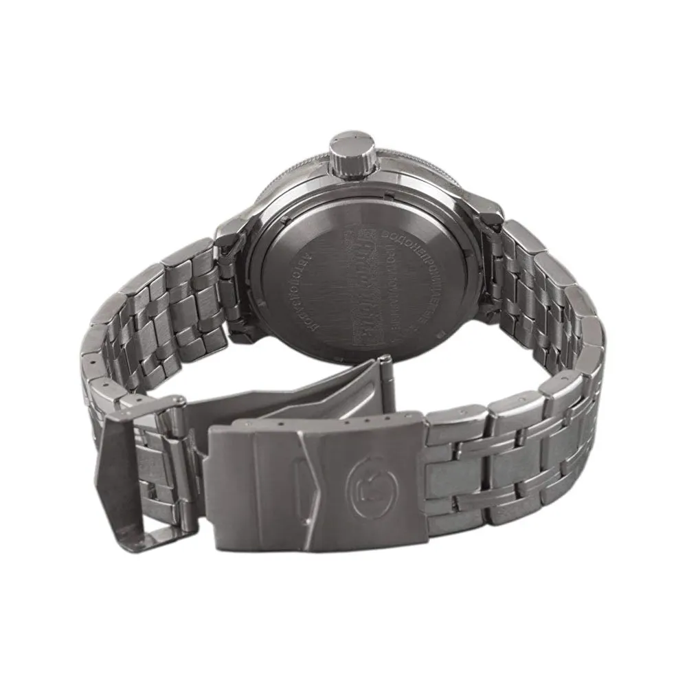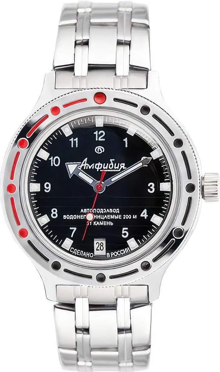 Мужские наручные часы Восток Командирские 420269. Автоматические с ручным подзаводом. Пружина механизма заводится автоматически благодаря естественным движениям владельца в процессе ежедневной носки часов. Также есть возможность ручного завода. Корпус изготовлен из высококачественной нержавеющей стали 316L с высокими антикоррозийными свойствами. На стрелки и отметки нанесен светонакопительный состав, благодаря этому считывать информацию с циферблата возможно и в темноте. На циферблате отображается текущее число месяца. Браслет из нержавеющей стали. Органическое стекло. Часы являются водонепроницаемыми до 20 Бар. Цвет корпуса: Серебристый. Цвет циферблата: Черный. Ширина (с заводной головкой): 40мм. Толщина: 12мм. Гарантия: 1 год.