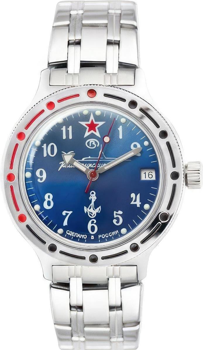 Мужские наручные часы Восток Командирские 420289. Автоматические с ручным подзаводом. Пружина механизма заводится автоматически благодаря естественным движениям владельца в процессе ежедневной носки часов. Также есть возможность ручного завода. Корпус изготовлен из высококачественной нержавеющей стали 316L с высокими антикоррозийными свойствами. На стрелки и отметки нанесен светонакопительный состав, благодаря этому считывать информацию с циферблата возможно и в темноте. На циферблате отображается текущее число месяца. Браслет из нержавеющей стали. Органическое стекло. Часы являются водонепроницаемыми до 20 Бар. Цвет корпуса: Серебристый. Цвет циферблата: Синий. Ширина (с заводной головкой): 42мм. Толщина: 15мм. Гарантия: 1 год.