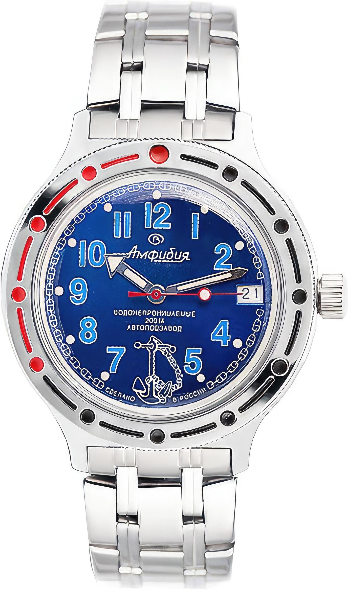 Мужские наручные часы Восток Командирские 420382. Автоматические с ручным подзаводом. Пружина механизма заводится автоматически благодаря естественным движениям владельца в процессе ежедневной носки часов. Также есть возможность ручного завода. Корпус изготовлен из высококачественной нержавеющей стали 316L с высокими антикоррозийными свойствами. На стрелки и отметки нанесен светонакопительный состав, благодаря этому считывать информацию с циферблата возможно и в темноте. На циферблате отображается текущее число месяца. Браслет из нержавеющей стали. Органическое стекло. Часы являются водонепроницаемыми до 20 Бар. Цвет корпуса: Серебристый. Цвет циферблата: Синий. Ширина (с заводной головкой): 42мм. Толщина: 15мм. Гарантия: 1 год.