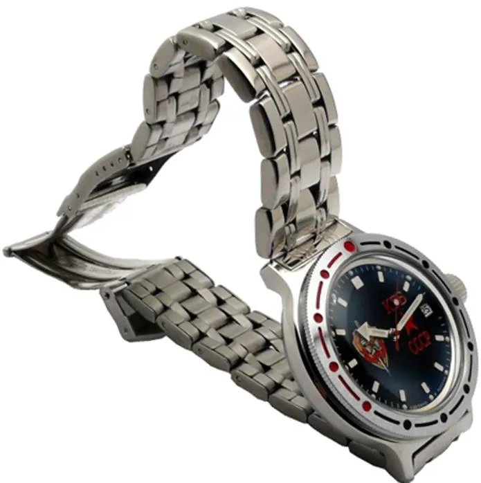 <b>Мужские наручные часы Восток Командирские 420457.</b> Автоматические с ручным подзаводом. Пружина механизма заводится автоматически благодаря естественным движениям владельца в процессе ежедневной носки часов. Также есть возможность ручного завода. Корпус изготовлен из высококачественной нержавеющей стали 316L с высокими антикоррозийными свойствами. На стрелки и отметки нанесен светонакопительный состав, благодаря этому считывать информацию с циферблата возможно и в темноте. На циферблате отображается текущее число месяца. Браслет из нержавеющей стали. Органическое стекло. Часы являются водонепроницаемыми до 20 Бар. Цвет корпуса: Серебристый. Цвет циферблата: Черный. Ширина (с заводной головкой): 42мм. Толщина: 15мм. Гарантия: 1 год.