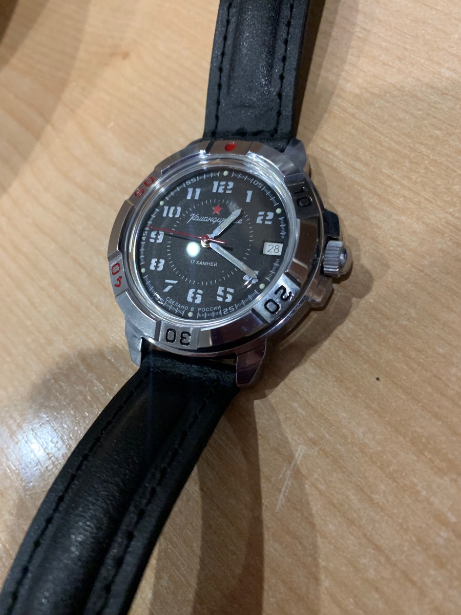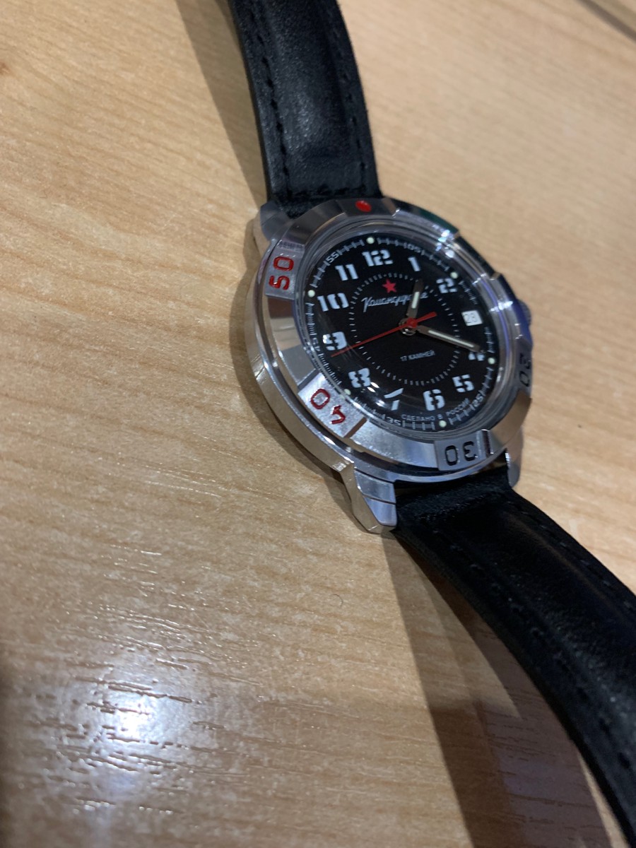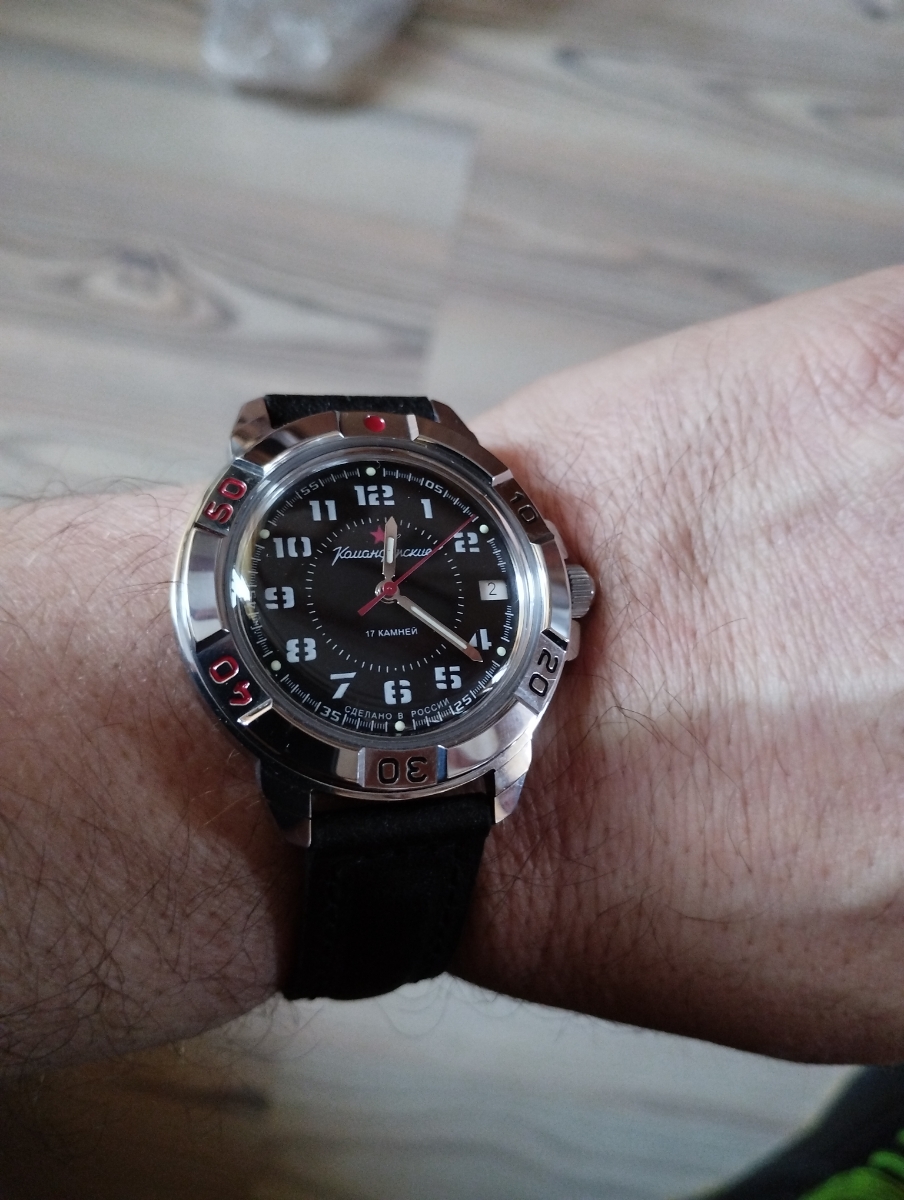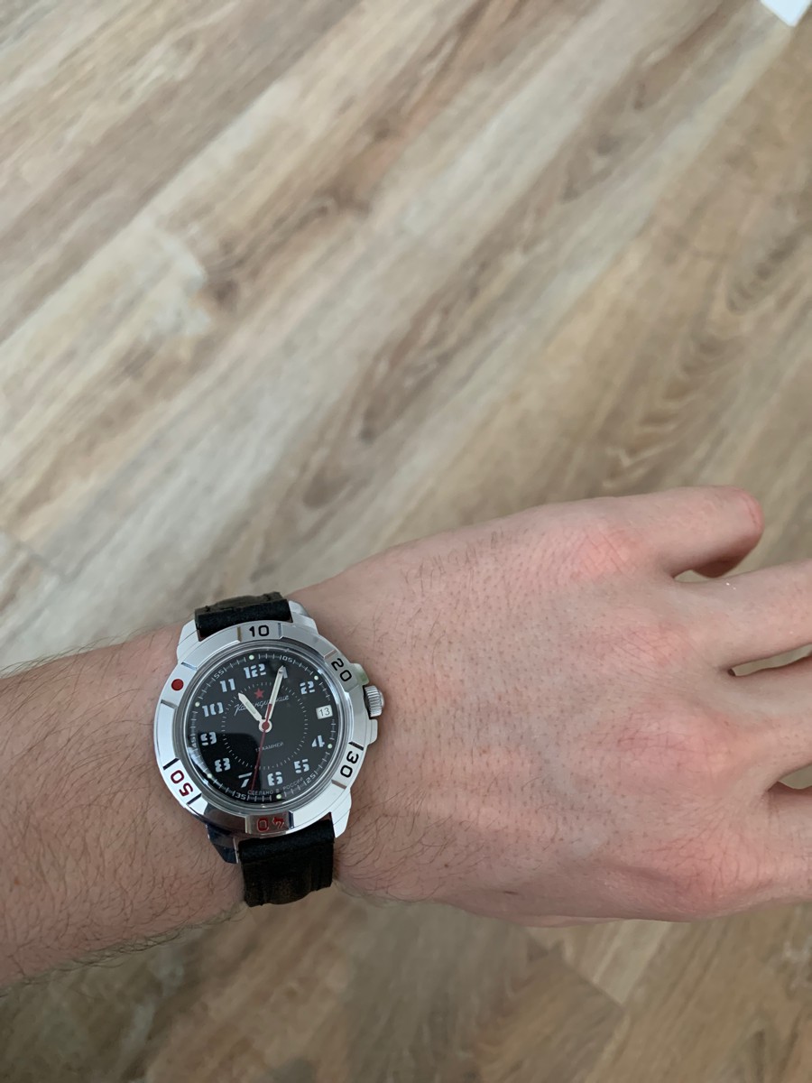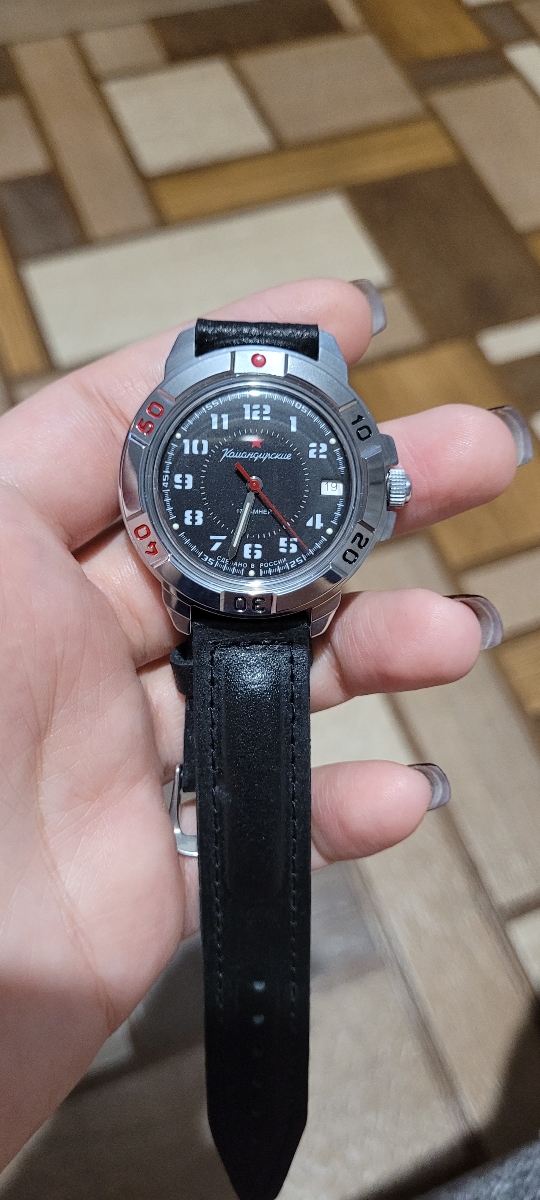 Ход у часов нормальный. Из фото 1 видно, что они идут почти ровно. Для механики это норм, так как я не заводил их с самого утра, а сейчас вечер, то ход отличается, пот полном заводе они показывают разницу в ходе примерно 3,4 секунды в день, что просто отличный результат. Часы на моей руке немного болтаются, но некритично. У меня рука среднего размера, но затянуть ремень не могу, так как не хватает отверстий. Сам механизм идет равномерно. Ремешок из кожи и очень хороший по качеству. Приятный на ощупь