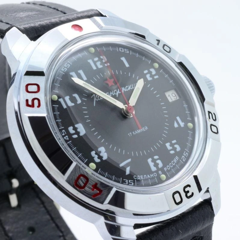 Мужские наручные часы Восток Командирские 431186. Механические с ручным подзаводом. Корпус изготовлен из высококачественной часовой латуни с высокими антикоррозийными свойствами. На стрелки и отметки нанесен светонакопительный состав, благодаря этому считывать информацию с циферблата возможно и в темноте. На циферблате отображается текущее число месяца. Ремешок изготовлен из кожи. Прочное, устойчивое к царапинам минеральное стекло защищает часы от повреждений.Часы являются водонепроницаемыми до 3 Бар. Цвет корпуса: Серебристый. Цвет циферблата: Черный. Ширина (с заводной головкой): 40мм. Толщина: 10мм. Гарантия: 1 год.
