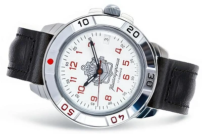 Мужские наручные часы Восток Командирские 43144Б. Механические с ручным подзаводом. Ремешок изготовлен из кожи. Браслет из нержавеющей стали. Органическое стекло. На циферблате отображается текущее число месяца. Часы являются водонепроницаемыми до 3 Бар. Цвет циферблата: Серебристый. Цвет корпуса: Белый. На стрелки и отметки нанесен светонакопительный состав, благодаря этому считывать информацию с циферблата возможно и в темноте. Толщина: 12 мм. Гарантия: 1 год.