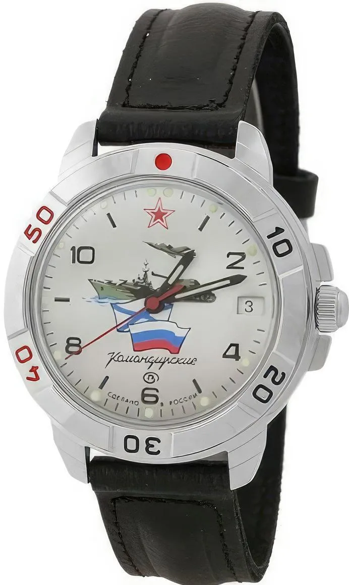 Мужские наручные часы Восток Командирские 431535. Механические с ручным подзаводом. Корпус изготовлен из высококачественной часовой латуни с высокими антикоррозийными свойствами. На стрелки и отметки нанесен светонакопительный состав, благодаря этому считывать информацию с циферблата возможно и в темноте. На циферблате отображается текущее число месяца. Ремешок изготовлен из кожи. Прочное, устойчивое к царапинам минеральное стекло защищает часы от повреждений.Часы являются водонепроницаемыми до 3 Бар. Цвет корпуса: Серебристый. Ширина (с заводной головкой): 40мм. Толщина: 10мм. Гарантия: 1 год.