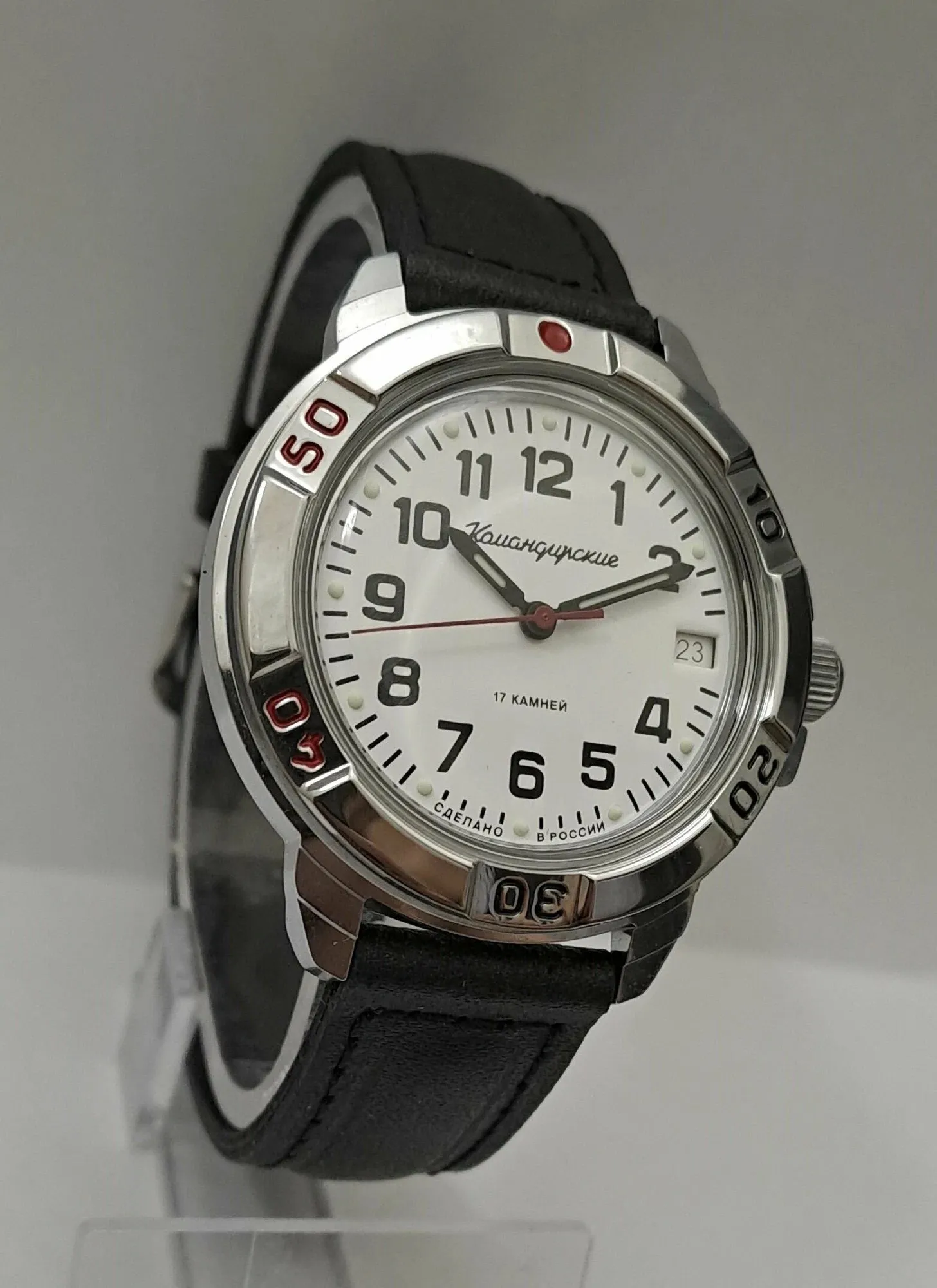 Мужские наручные часы Восток Командирские 43182Б. Механические с ручным подзаводом. Ремешок изготовлен из кожи. Браслет из нержавеющей стали. Прочное, устойчивое к царапинам минеральное стекло защищает часы от повреждений. На циферблате отображается текущее число месяца. Часы являются водонепроницаемыми до 3 Бар. Цвет циферблата: Серебристый. Цвет корпуса: Белый. На стрелки и отметки нанесен светонакопительный состав, благодаря этому считывать информацию с циферблата возможно и в темноте. Толщина: 12 мм. Гарантия: 1 год.