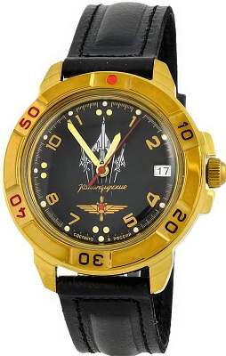 Мужские наручные часы Восток Командирские 439511. Механические с ручным подзаводом. Корпус изготовлен из высококачественной часовой латуни с высокими антикоррозийными свойствами. На стрелки и отметки нанесен светонакопительный состав, благодаря этому считывать информацию с циферблата возможно и в темноте. На циферблате отображается текущее число месяца. Ремешок изготовлен из кожи. Прочное, устойчивое к царапинам минеральное стекло защищает часы от повреждений.Часы являются водонепроницаемыми до 3 Бар. Цвет корпуса: Желтое золото. Цвет циферблата: Черный. Ширина (с заводной головкой): 40мм. Толщина: 10мм. Гарантия: 1 год.