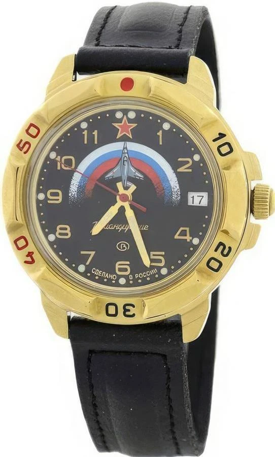 Мужские наручные часы Восток Командирские 439608. Механические с ручным подзаводом. Корпус изготовлен из высококачественной часовой латуни с высокими антикоррозийными свойствами. На стрелки и отметки нанесен светонакопительный состав, благодаря этому считывать информацию с циферблата возможно и в темноте. На циферблате отображается текущее число месяца. Ремешок изготовлен из кожи. Прочное, устойчивое к царапинам минеральное стекло защищает часы от повреждений.Часы являются водонепроницаемыми до 3 Бар. Цвет корпуса: Желтое золото. Цвет циферблата: Черный. Ширина (с заводной головкой): 40мм. Толщина: 10мм. Гарантия: 1 год.