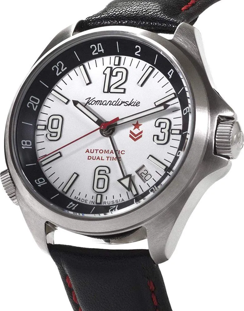 Мужские наручные часы Восток Командирские 470767. Механические с автоподзаводом. Пружина механизма заводится автоматически благодаря естественным движениям владельца в процессе ежедневной носки часов. Корпус изготовлен из высококачественной нержавеющей стали 316L с высокими антикоррозийными свойствами. На стрелки и отметки нанесен светонакопительный состав, благодаря этому считывать информацию с циферблата возможно и в темноте. На циферблате отображается текущее число месяца. Ремешок изготовлен из кожи. Прочное, устойчивое к царапинам минеральное стекло защищает часы от повреждений. Часы являются водонепроницаемыми до 10 Бар. Цвет корпуса: Серебристый. Цвет циферблата: Белый. Ширина (с заводной головкой): 43мм. Толщина: 15мм. Гарантия: 1 год.