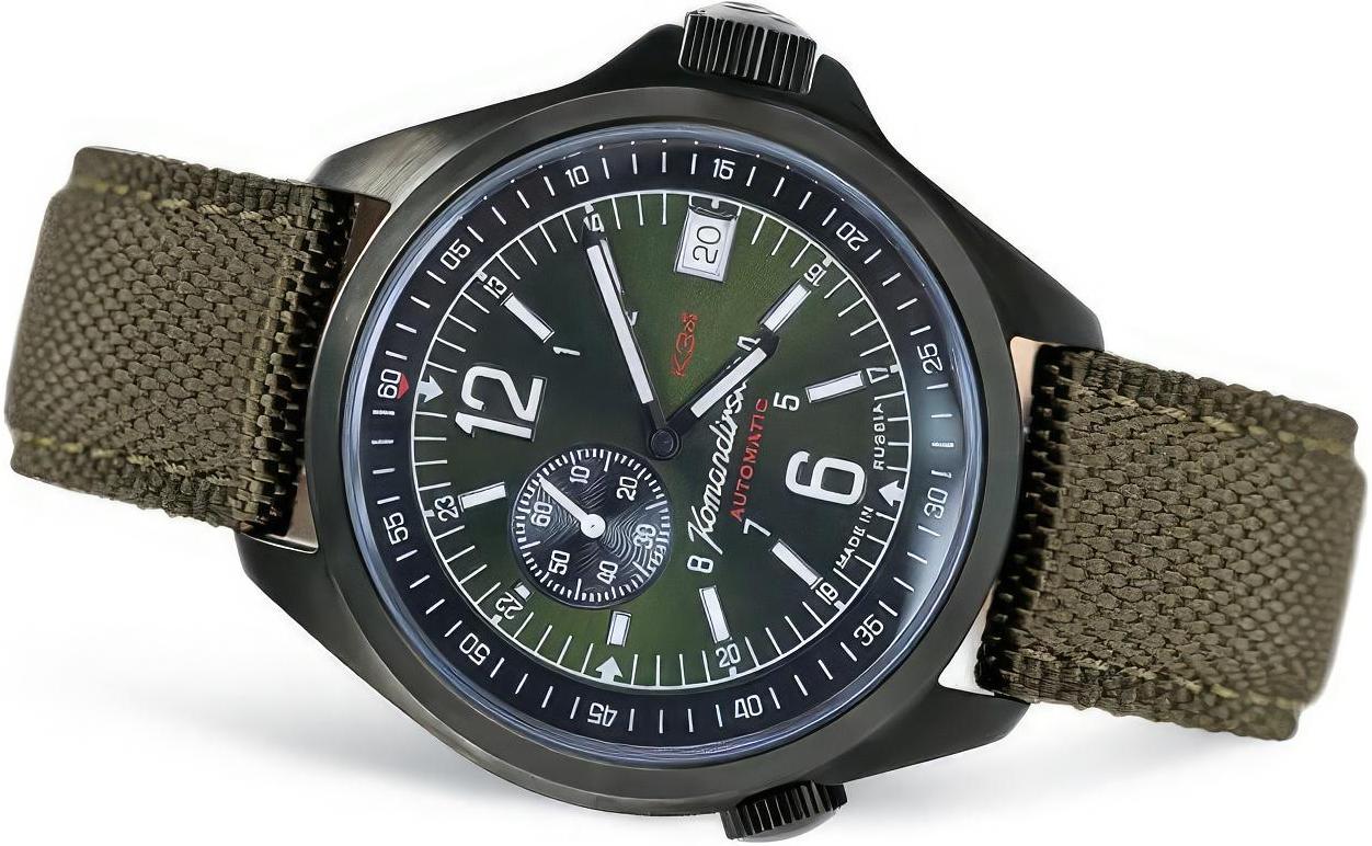 Мужские наручные часы Восток Командирские 476966. Механические с ручным подзаводом. Корпус изготовлен из высококачественной нержавеющей стали 316L с высокими антикоррозийными свойствами. На стрелки и отметки нанесен светонакопительный состав, благодаря этому считывать информацию с циферблата возможно и в темноте. На циферблате отображается текущее число месяца. Текстильный ремешок. Прочное, устойчивое к царапинам минеральное стекло защищает часы от повреждений. Часы являются водонепроницаемыми до 10 Бар. Цвет корпуса: Черный. Цвет циферблата: Зеленый. Ширина (с заводной головкой): 40мм. Толщина: 13мм. Гарантия: 1 год.