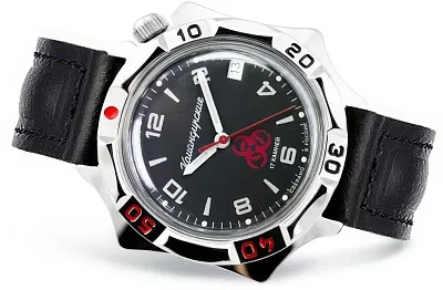 Мужские наручные часы Восток Командирские 53127Б. Механические с ручным подзаводом. Ремешок изготовлен из кожи. Браслет из нержавеющей стали. Органическое стекло. На циферблате отображается текущее число месяца. Часы являются водонепроницаемыми до 3 Бар. Цвет циферблата: Серебристый. Цвет корпуса: Черный. На стрелки и отметки нанесен светонакопительный состав, благодаря этому считывать информацию с циферблата возможно и в темноте. Толщина: 12 мм. Гарантия: 1 год.