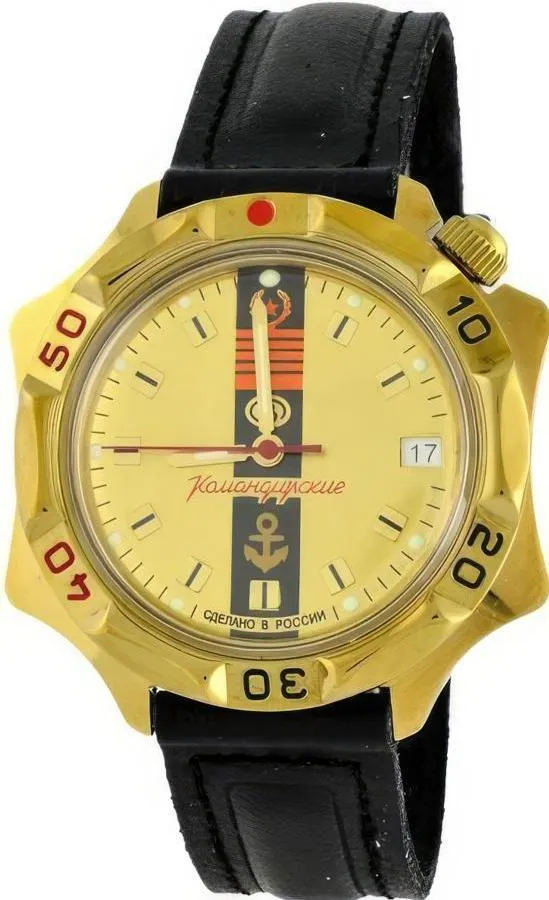 Мужские наручные часы Восток Командирские 539217. Механические с ручным подзаводом. Корпус изготовлен из высококачественной часовой латуни с высокими антикоррозийными свойствами. На стрелки и отметки нанесен светонакопительный состав, благодаря этому считывать информацию с циферблата возможно и в темноте. На циферблате отображается текущее число месяца. Ремешок изготовлен из кожи. Прочное, устойчивое к царапинам минеральное стекло защищает часы от повреждений.Часы являются водонепроницаемыми до 3 Бар. Цвет циферблата: Желтый. Ширина (с заводной головкой): 40мм. Толщина: 10мм. Гарантия: 1 год.