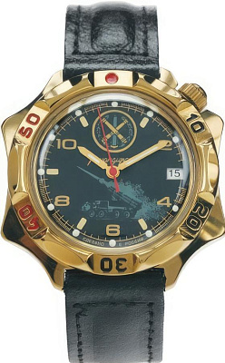 Мужские наручные часы Восток Командирские 539771. Механические с ручным подзаводом. Корпус изготовлен из высококачественной часовой латуни с высокими антикоррозийными свойствами. На стрелки и отметки нанесен светонакопительный состав, благодаря этому считывать информацию с циферблата возможно и в темноте. На циферблате отображается текущее число месяца. Ремешок изготовлен из кожи. Прочное, устойчивое к царапинам минеральное стекло защищает часы от повреждений.Часы являются водонепроницаемыми до 3 Бар. Цвет корпуса: Желтое золото. Цвет циферблата: Черный. Ширина (с заводной головкой): 40мм. Толщина: 10мм. Гарантия: 1 год.