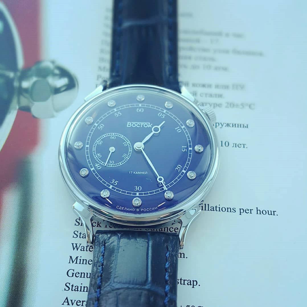 Женские наручные часы Восток Командирские 581591. Механические с ручным подзаводом. Корпус изготовлен из высококачественной нержавеющей стали 316L с высокими антикоррозийными свойствами. Ремешок изготовлен из кожи. Органическое стекло. Часы являются водонепроницаемыми до 3 Бар. Цвет корпуса: Синий. Цвет циферблата: Синий. Ширина (с заводной головкой): 38мм. Толщина: 11мм. Гарантия: 1 год.
