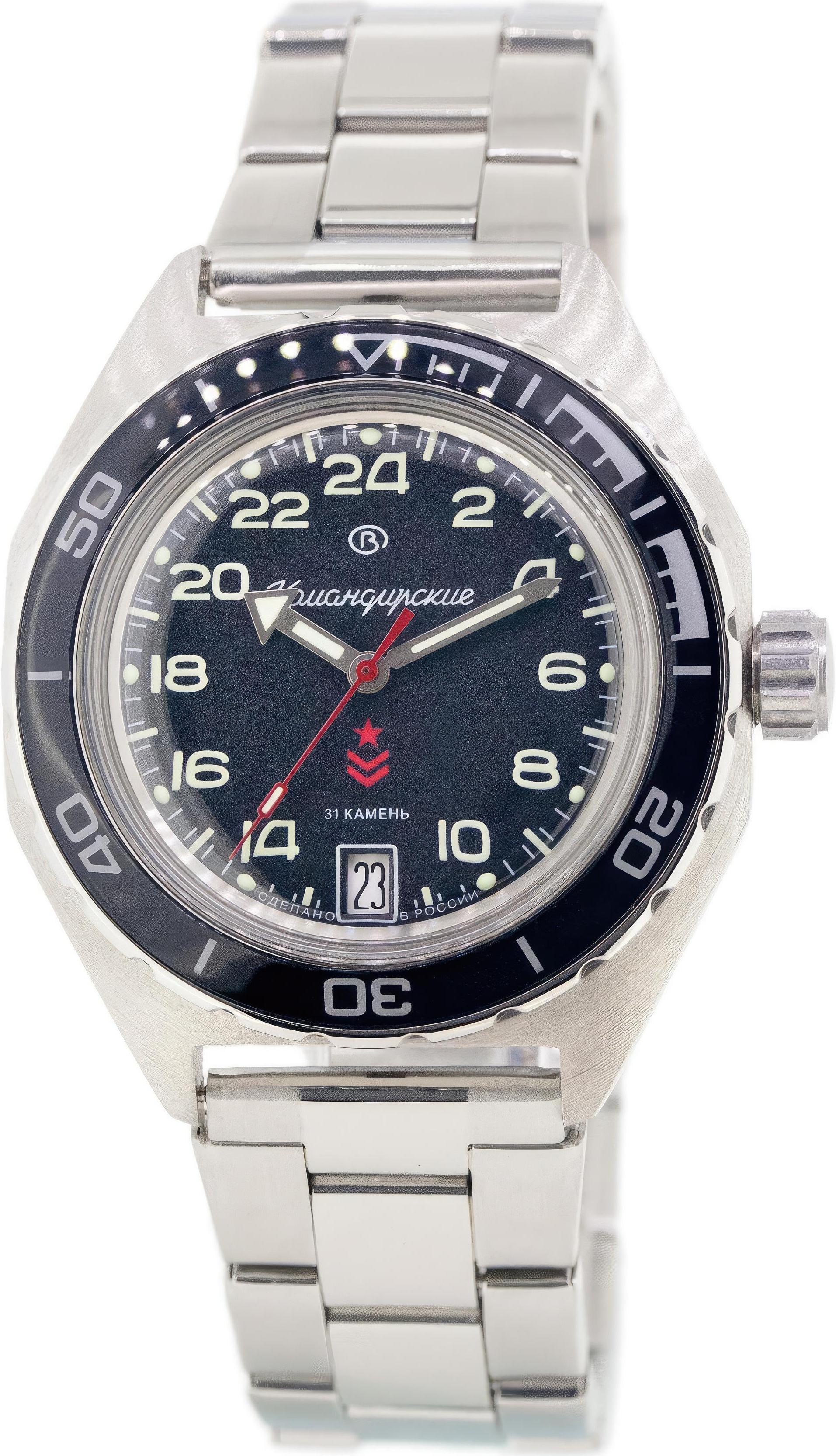 Мужские наручные часы Восток Командирские 650541. Механические с автоподзаводом. Пружина механизма заводится автоматически благодаря естественным движениям владельца в процессе ежедневной носки часов. Корпус изготовлен из высококачественной нержавеющей стали 316L с высокими антикоррозийными свойствами. На стрелки и отметки нанесен светонакопительный состав, благодаря этому считывать информацию с циферблата возможно и в темноте. На циферблате отображается текущее число месяца. Браслет из нержавеющей стали. Органическое стекло. Часы являются водонепроницаемыми до 20 Бар. Цвет корпуса: Черный. Ширина (с заводной головкой): 41мм. Толщина: 15мм. Гарантия: 1 год.