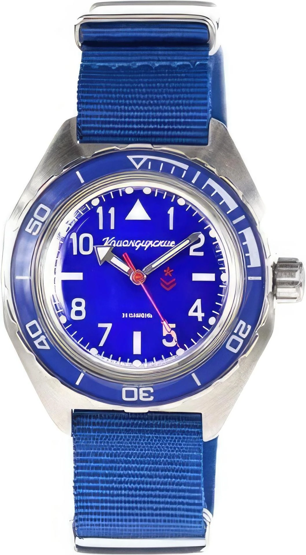 Мужские наручные часы Восток Командирские 650852. Механические с автоподзаводом. Пружина механизма заводится автоматически благодаря естественным движениям владельца в процессе ежедневной носки часов. Корпус изготовлен из высококачественной нержавеющей стали 316L с высокими антикоррозийными свойствами. На стрелки и отметки нанесен светонакопительный состав, благодаря этому считывать информацию с циферблата возможно и в темноте. Текстильный ремешок. Органическое стекло. Часы являются водонепроницаемыми до 20 Бар. Цвет корпуса: Синий. Цвет циферблата: Синий. Ширина (с заводной головкой): 46мм. Толщина: 15мм. Гарантия: 1 год.