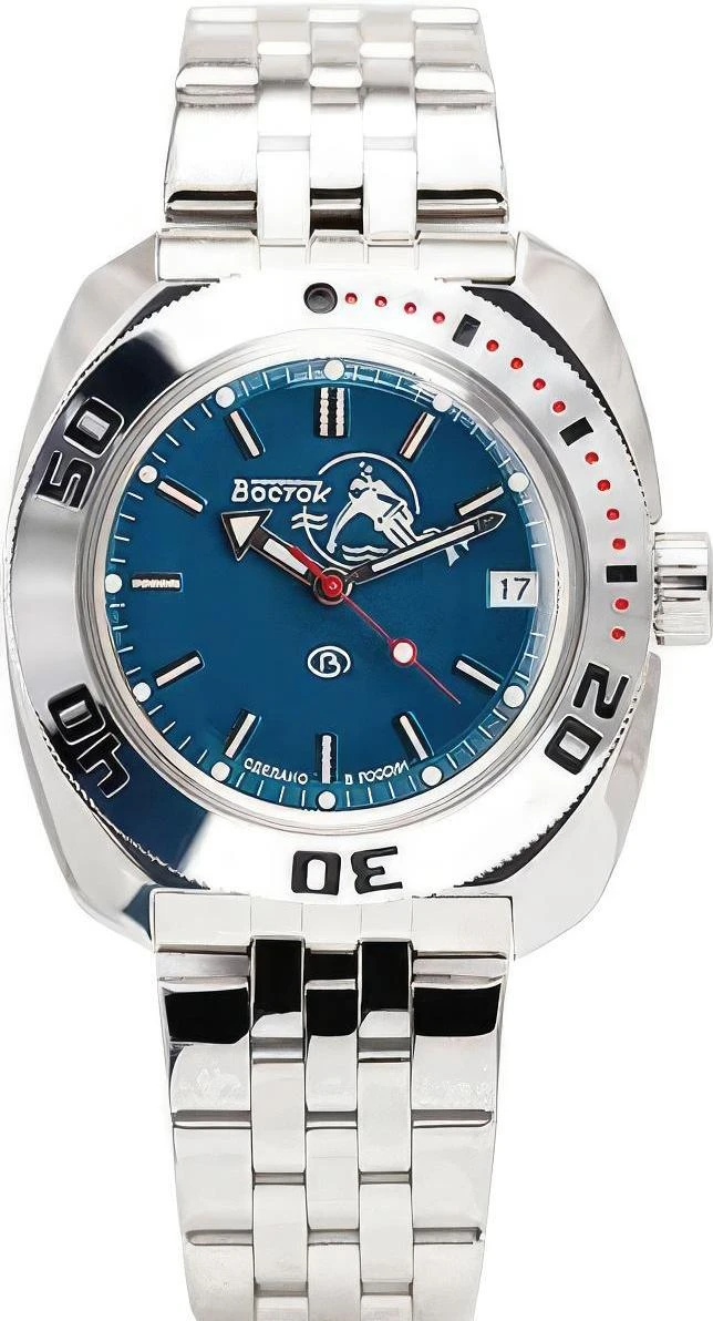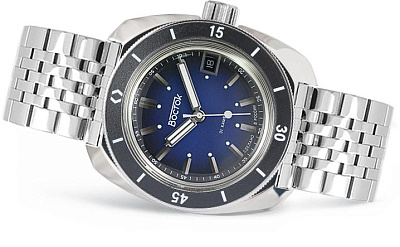 Мужские наручные часы Восток Командирские 710059. Автоматические с ручным подзаводом. Пружина механизма заводится автоматически благодаря естественным движениям владельца в процессе ежедневной носки часов. Также есть возможность ручного завода. Корпус изготовлен из высококачественной нержавеющей стали 316L с высокими антикоррозийными свойствами. На стрелки и отметки нанесен светонакопительный состав, благодаря этому считывать информацию с циферблата возможно и в темноте. На циферблате отображается текущее число месяца. Браслет из нержавеющей стали. Органическое стекло. Часы являются водонепроницаемыми до 20 Бар. Цвет корпуса: Синий. Цвет циферблата: Синий. Ширина (с заводной головкой): 42мм. Толщина: 12мм. Гарантия: 1 год.