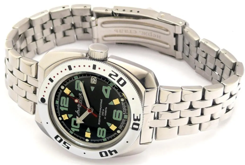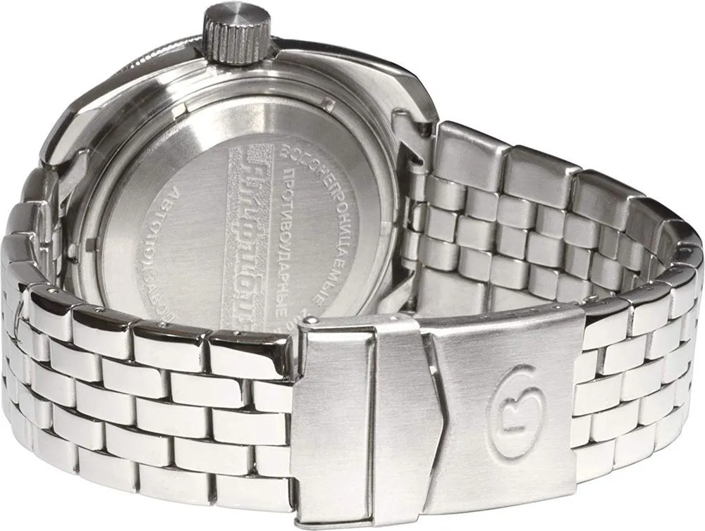 <b>Мужские наручные часы Восток Командирские 710334.</b> Автоматические с ручным подзаводом. Пружина механизма заводится автоматически благодаря естественным движениям владельца в процессе ежедневной носки часов. Также есть возможность ручного завода. Корпус изготовлен из высококачественной нержавеющей стали 316L с высокими антикоррозийными свойствами. На стрелки и отметки нанесен светонакопительный состав, благодаря этому считывать информацию с циферблата возможно и в темноте. На циферблате отображается текущее число месяца. Браслет из нержавеющей стали. Органическое стекло. Часы являются водонепроницаемыми до 20 Бар. Цвет корпуса: Черный. Цвет циферблата: Черный. Ширина (с заводной головкой): 42мм. Толщина: 12мм. Гарантия: 1 год.