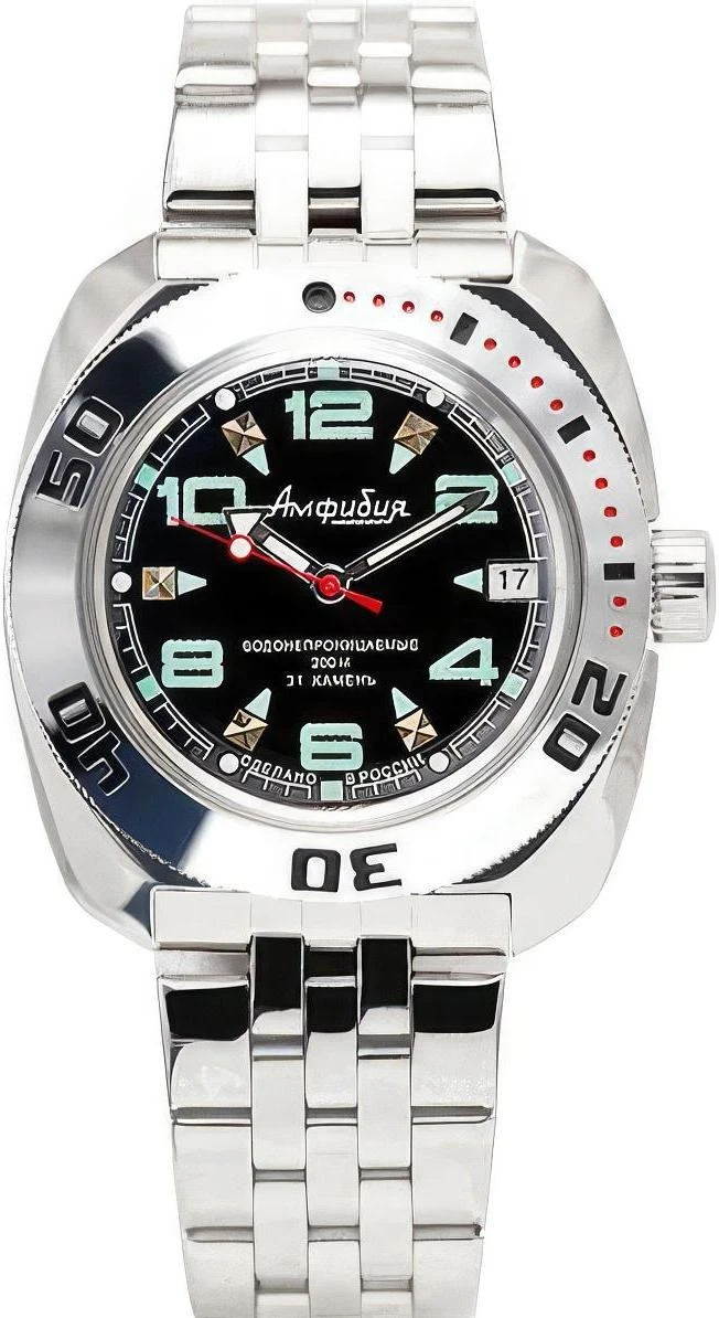 Мужские наручные часы Восток Командирские 710334. Автоматические с ручным подзаводом. Пружина механизма заводится автоматически благодаря естественным движениям владельца в процессе ежедневной носки часов. Также есть возможность ручного завода. Корпус изготовлен из высококачественной нержавеющей стали 316L с высокими антикоррозийными свойствами. На стрелки и отметки нанесен светонакопительный состав, благодаря этому считывать информацию с циферблата возможно и в темноте. На циферблате отображается текущее число месяца. Браслет из нержавеющей стали. Органическое стекло. Часы являются водонепроницаемыми до 20 Бар. Цвет корпуса: Черный. Цвет циферблата: Черный. Ширина (с заводной головкой): 42мм. Толщина: 12мм. Гарантия: 1 год.
