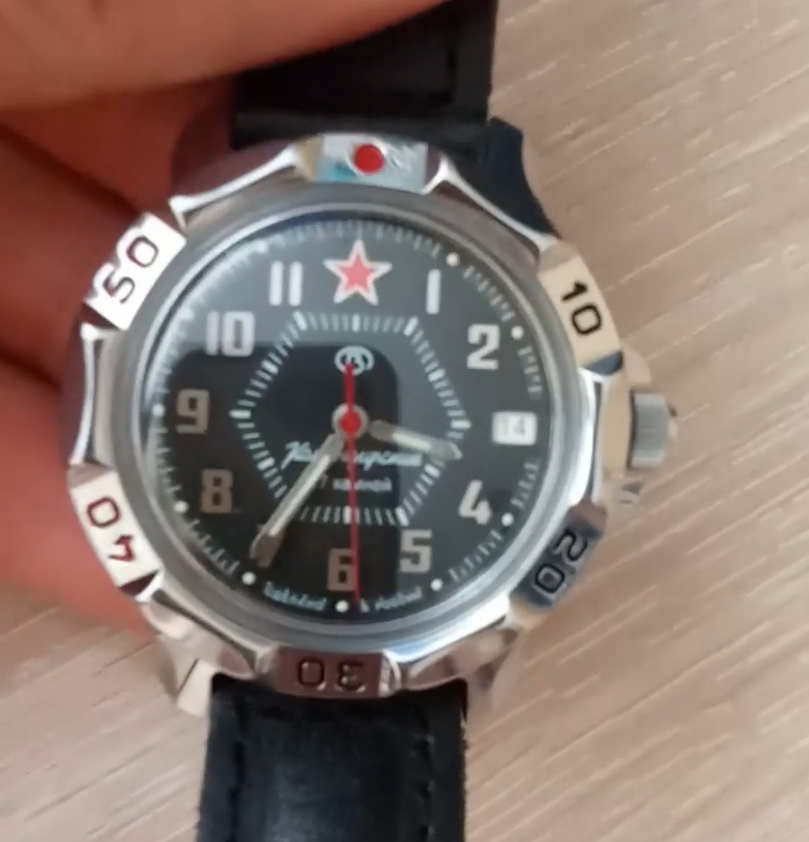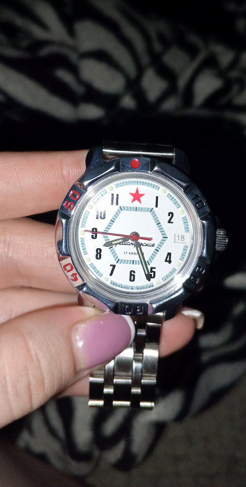Покупала на подарок мужу. У него уже были подобные часы, но за 15 лет носки они уже выглядели очень плохо. Новые часы особо не отличаются от старых. Вместе с часами шла подробная инструкция как правильно настроить часы, даже был номер специалиста который может помочь в этом. Муж быстро сам их завёл и выставил время. Также у часов светятся стрелки в темноте, что очень удобно. Но есть единственный минус в этих часах это ремешок слишком короткий, пришлось сразу менять