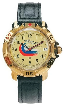 Мужские наручные часы Восток Командирские 819564. Механические с ручным подзаводом. Корпус изготовлен из высококачественной часовой латуни с высокими антикоррозийными свойствами. На стрелки и отметки нанесен светонакопительный состав, благодаря этому считывать информацию с циферблата возможно и в темноте. На циферблате отображается текущее число месяца. Ремешок изготовлен из кожи. Прочное, устойчивое к царапинам минеральное стекло защищает часы от повреждений.Часы являются водонепроницаемыми до 3 Бар. Цвет корпуса: Желтое золото. Цвет циферблата: Золотистый. Ширина (с заводной головкой): 40мм. Толщина: 10мм. Гарантия: 1 год.