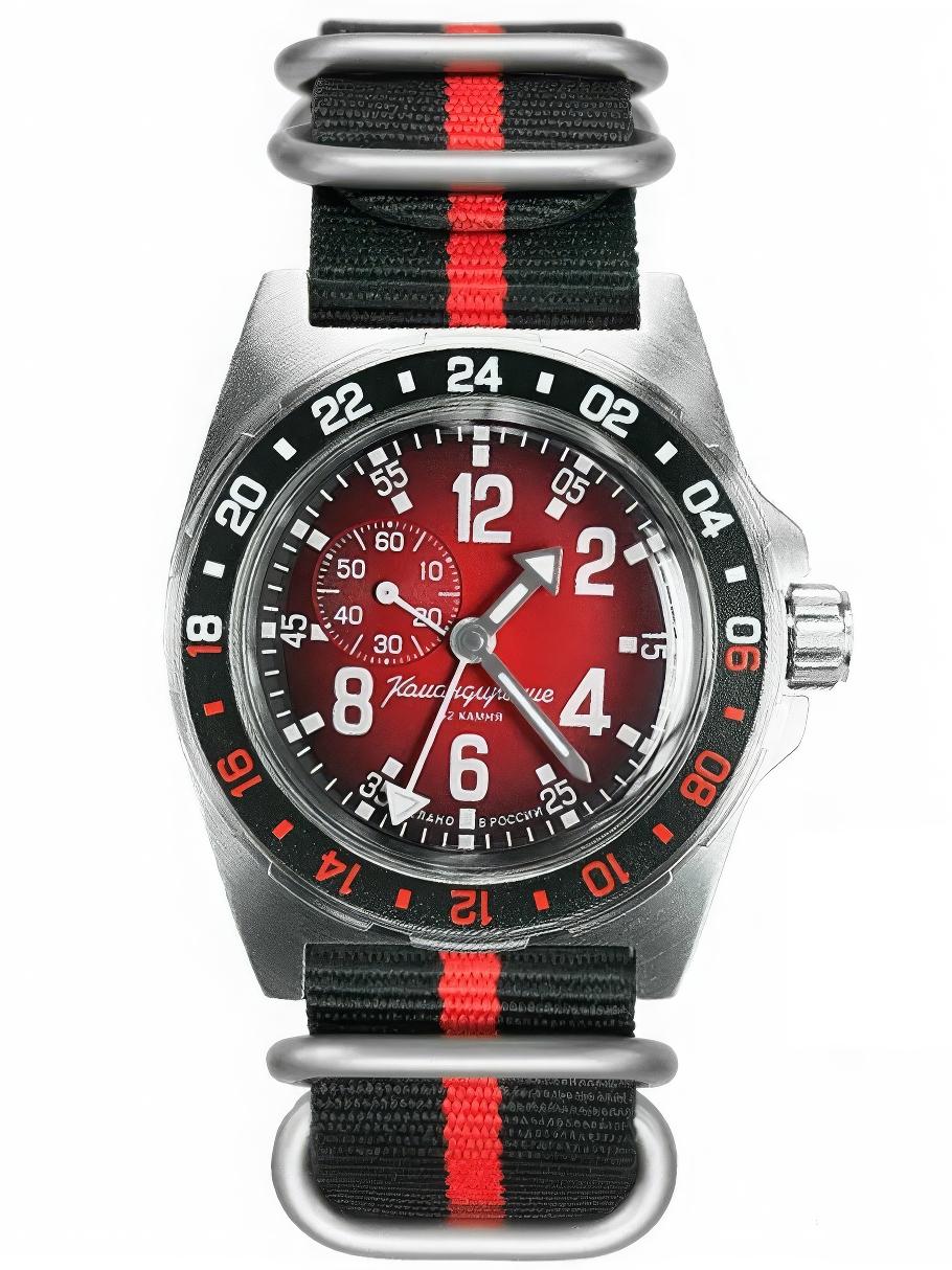 Мужские наручные часы Восток Командирские 95060Б. Механические с ручным подзаводом. Текстильный ремешок. Функция хронографа. Браслет из нержавеющей стали. Органическое стекло. Часы являются водонепроницаемыми до 20 Бар. Цвет циферблата: Черный. Цвет корпуса: Красный. На стрелки и отметки нанесен светонакопительный состав, благодаря этому считывать информацию с циферблата возможно и в темноте. Высота (с ушками): 49 мм. Толщина: 15 мм. Гарантия: 1 год.