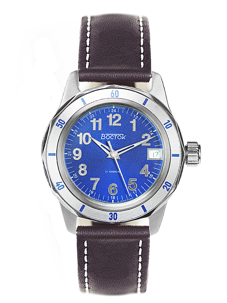 Мужские наручные часы Восток Мегаполис 79015А. Механические с ручным подзаводом. Ремешок изготовлен из кожи. Ударопрочная конструкция часов защищает от ударов и вибрации. Аккумулятор обеспечивает часы достаточным питанием приблизительно на 10 лет. Браслет из нержавеющей стали. Прочное, устойчивое к царапинам минеральное стекло защищает часы от повреждений. На циферблате отображается текущее число месяца. Часы являются водонепроницаемыми до 3 Бар. Цвет циферблата: Серебристый. Цвет корпуса: Синий. Высота (с ушками): 45 мм. Толщина: 15 мм. Гарантия: 1 год.
