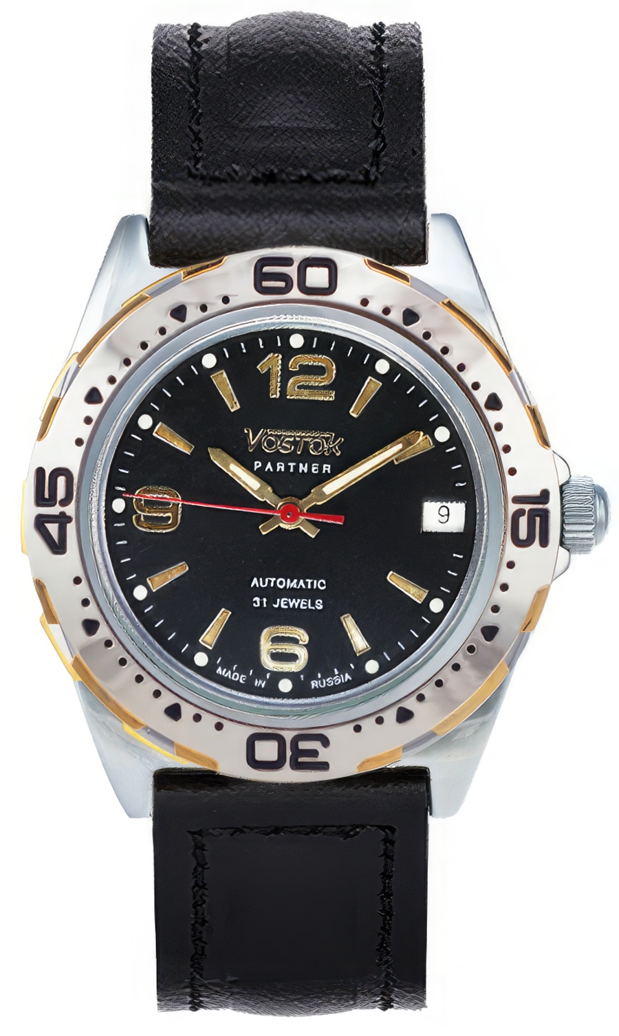 Мужские наручные часы Восток Партнер 25148А. Механические с ручным подзаводом. Ремешок изготовлен из кожи. Браслет из нержавеющей стали. Прочное, устойчивое к царапинам минеральное стекло защищает часы от повреждений. На циферблате отображается текущее число месяца. Часы являются водонепроницаемыми до 3 Бар. Цвет циферблата: Серебристый. Цвет корпуса: Черный. На стрелки и отметки нанесен светонакопительный состав, благодаря этому считывать информацию с циферблата возможно и в темноте. Толщина: 12 мм. Гарантия: 1 год.