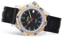 Мужские наручные часы Восток Партнер 30190А. Механические с ручным подзаводом. Ремешок изготовлен из кожи. Браслет из нержавеющей стали. Прочное, устойчивое к царапинам минеральное стекло защищает часы от повреждений. На циферблате отображается текущее число месяца. Часы являются водонепроницаемыми до 3 Бар. Цвет циферблата: Серебристый. Цвет циферблата: Желтое золото. Цвет корпуса: Черный. На стрелки и отметки нанесен светонакопительный состав, благодаря этому считывать информацию с циферблата возможно и в темноте. Толщина: 13 мм. Гарантия: 1 год.