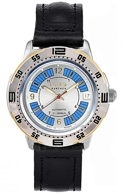 Мужские наручные часы Восток Партнер 31165А. Механические с ручным подзаводом. Ремешок изготовлен из кожи. Браслет из нержавеющей стали. Прочное, устойчивое к царапинам минеральное стекло защищает часы от повреждений. На циферблате отображается текущее число месяца. Часы являются водонепроницаемыми до 3 Бар. Цвет циферблата: Серебристый. Цвет циферблата: Желтое золото. Цвет корпуса: Белый. На стрелки и отметки нанесен светонакопительный состав, благодаря этому считывать информацию с циферблата возможно и в темноте. Толщина: 12 мм. Гарантия: 1 год.